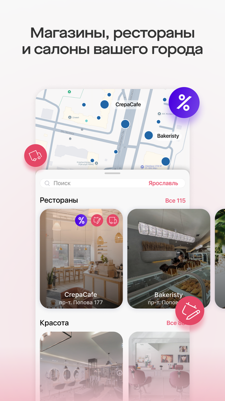 Находите заведения, сохраняйте список ресторанов, салонов, магазинов, которые чаще всего посещаете, и выстраивайте коммуникацию из одного приложения.