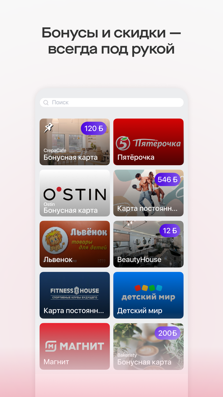 • хранить все бонусные карты в одном месте;