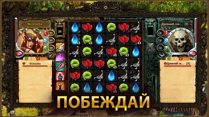 ряд»). Проще говоря, вы деретесь, передвигая камни на поле, но при этом у вас есть практически все, что можно получить от MMORPG: бои с другими игроками, большой выбор экипировки, ранги, кланы, профессии и торговля.