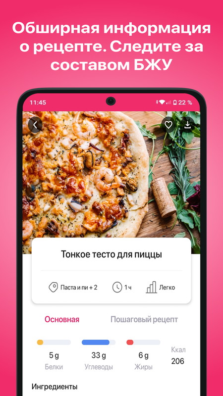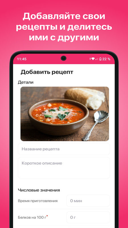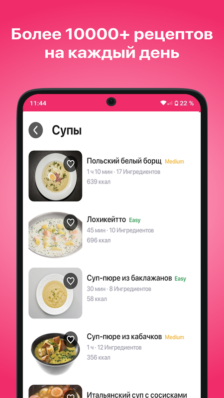 Откройте для себя приложение с более чем 10,000 разнообразных рецептов, которые подойдут для любого случая. Здесь вы найдете пошаговые инструкции, фотографии готовых блюд, подробное описание КБЖУ (калорийность, белки, жиры, углеводы) и сможете готовить легко и с удовольствием.