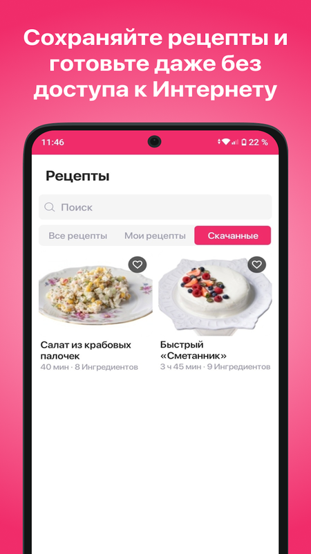 Работает без интернета – сохраняйте рецепты и готовьте где угодно.