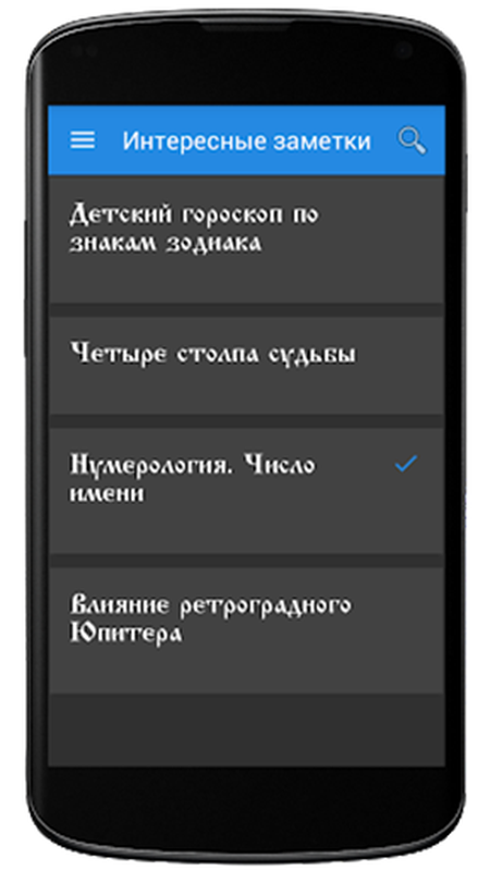 В приложении много заметок на различные темы: