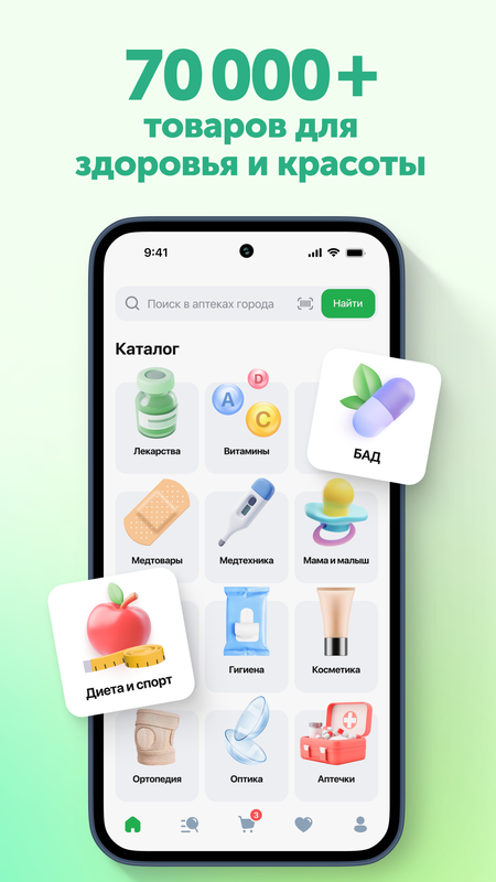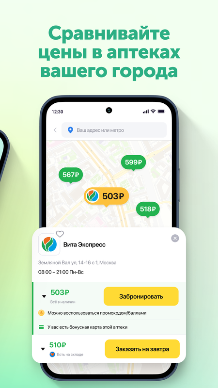 В нашем приложении можно не только находить и бронировать аптечные товары по выгодным ценам, но и получать дополнительные скидки на покупки. Вы можете использовать промокод на первый заказ, накопленные реферальные баллы и применять скидочные карты аптек при выкупе заказа.