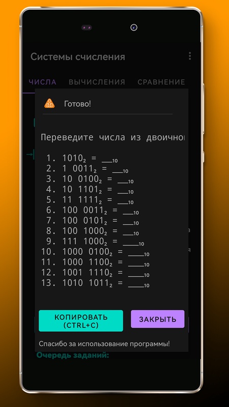 Приложение для учителей информатики и смежных профессий. Позволяет генерировать задания на тему «Системы счисления» для учеников 8 класса и старше: