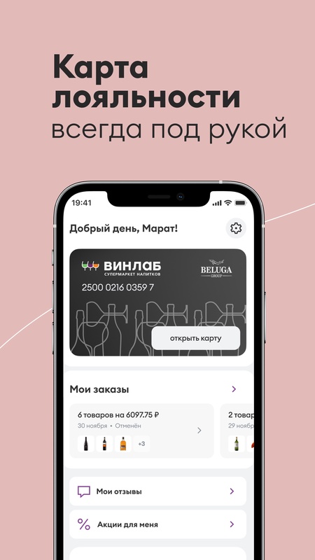 Узнавайте первыми о постоянных акциях и скидках на вино, крепкий алкоголь и другие категории напитков, включив push-уведомления в настройках. Отслеживайте выгодные персональные предложения в личном кабинете в разделе «Акции для меня».