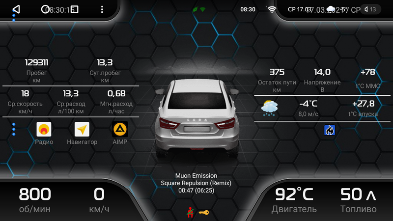 + отображение климата, пробега, передач АКПП, круиз-контроля, ограничителя скорости, кондиционера и рециркуляции на Грантах