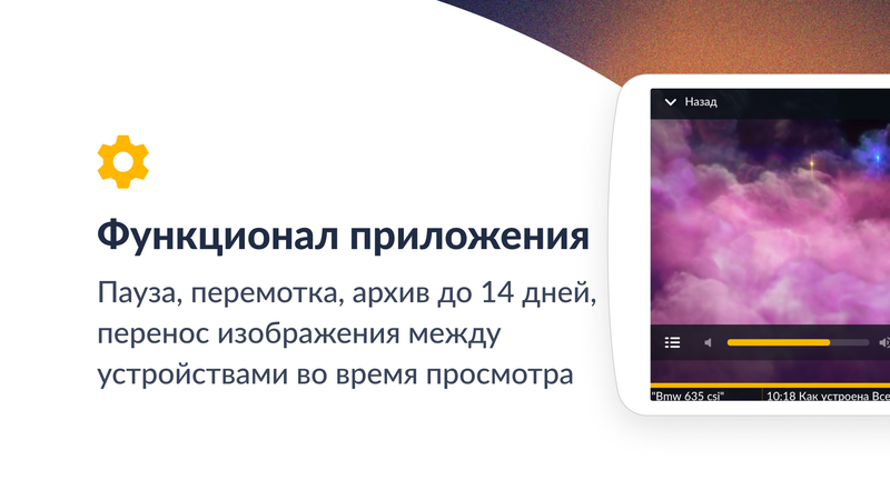• Классика кино и эксклюзивные премьеры: фильмы и сериалы ведущих мировых и российских киностудий, новинки ТВ-шоу