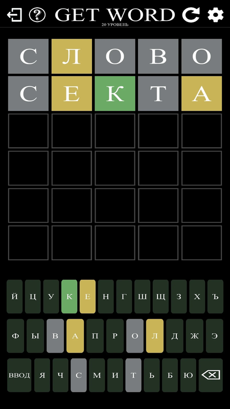 Get Word - это увлекательная многоуровневая игра в слова. Она очень похожа на Wordle, игру, которая покорила Интернет. Wordle - это мобильная версия старого телешоу Lingo. У вас есть 6 попыток, чтобы найти слово, но не волнуйтесь, мы скажем вам, какую букву вы угадали, а какую поставили правильно. В игре есть скрытое слово которое нужно подобрать за несколько попыток.