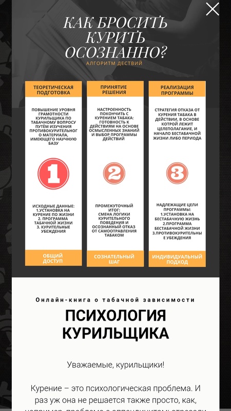 Онлайн-книга о табачной зависимости. Представляет собой теоретическую подготовку для курильщиков, стоящих на пороге принятия решения отказаться от курения табака.